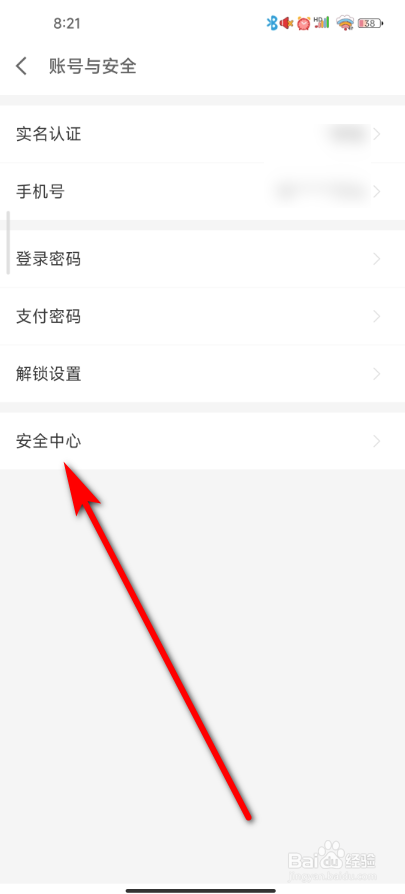 在软件设置中间选择【账号与安全】选项,点击进入。