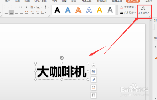 2.点击选择艺术字,然后再上方属性栏中打开效果属性
