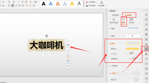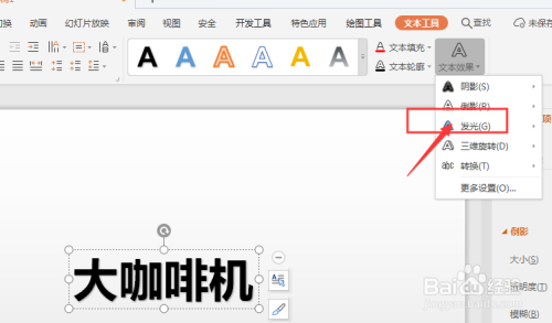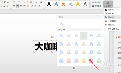 然后在扩展效果栏中,选择需要的发光样式,点击添加到文字上
