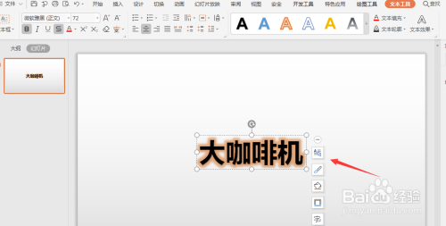 点击选择艺术字,然后再上方属性栏中打开效果属性