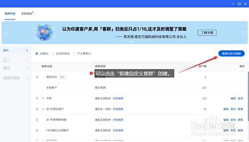 可以点击“新建自界说客群”创建。