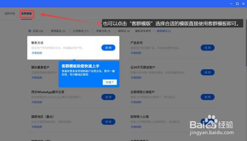 别的也可以点击“客群模版”选择合适的模版直接利用客群模板即可。