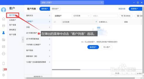 在弹出的菜单中点击“客户列表”选项。