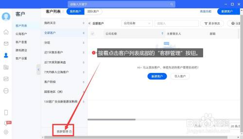 接着点击客户列表底部的“客群办理”按钮。