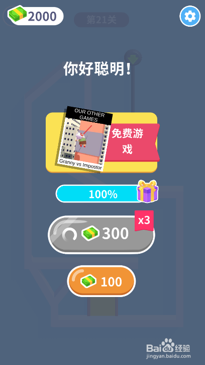 少年打开门乐成出险,弹出通关画面,如图。这样就过关了。