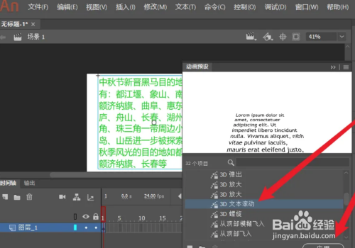 选择3D文字滚动效果,然后点击应用按钮。