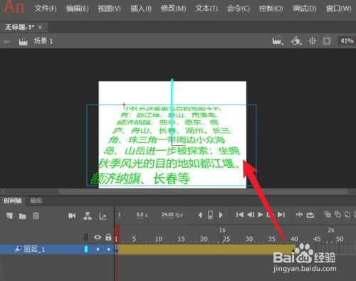 在舞台中输入要建造动画的文字内容。
