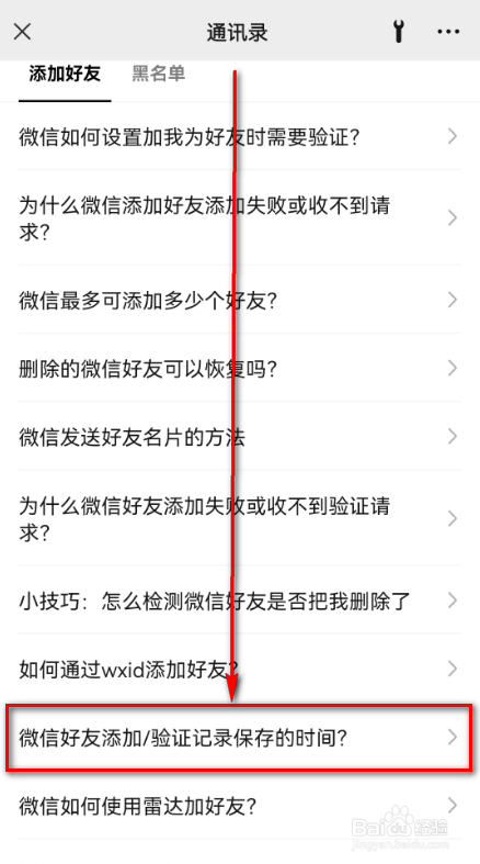 点击:(微信摰友添加/验证记载生存的时间?)按钮后就看到(记载生存时间)了。