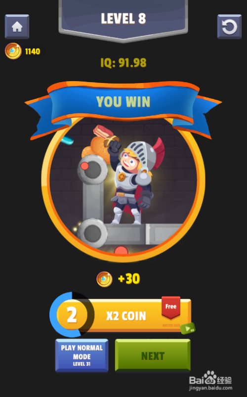 少年景功获得食品,弹出YOU WIN的通关画面,如图。这样就过关了。