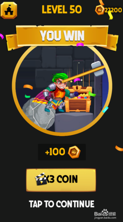 少年景功获得宝箱,弹出YOU WIN的通关动画,如图,这样就过关了。