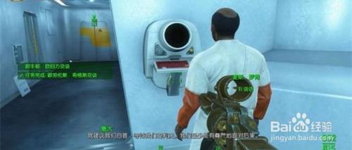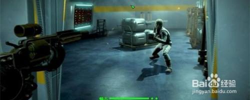 开锁进到一间大型堆栈,会有突袭者冲出来,切换到VATS模式击杀。往前找到一台电脑终端,破解它后可以打开安全门并关失炮塔。