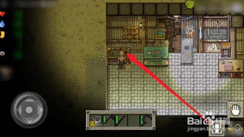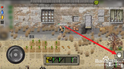 如图所示点击【手掌图标】拾取【废旧塑料桶】