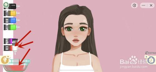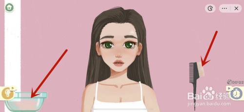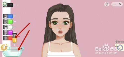 梳好之后,左边会呈现染色剂和调色碗,开始调女团粉色,先插手大红色,然后插手白色。