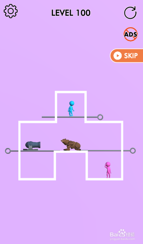 这一关小蓝人站在山君上侧,小粉人站在棕熊下侧,环境如图。