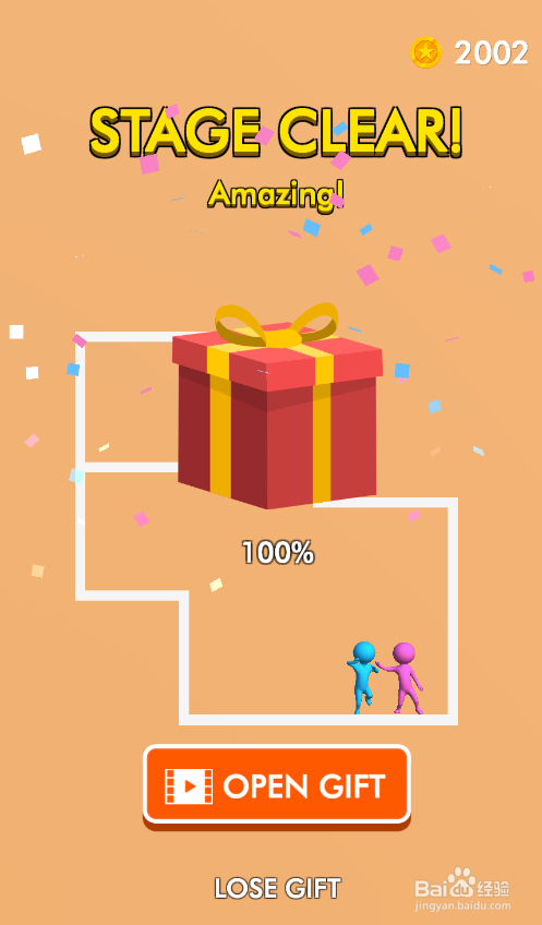 小粉人乐成获救,弹出通关动画,如图。这样就过关了。