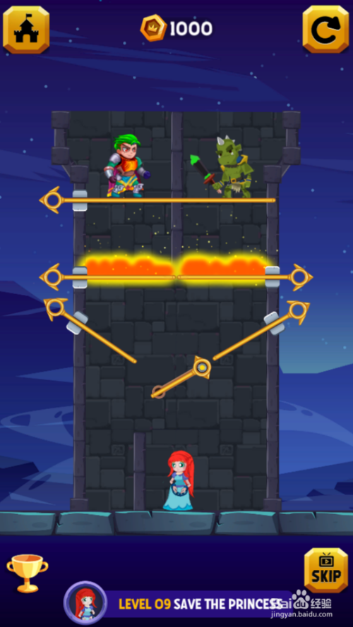 这一关使命是营救公本家儿,怪物兵站在少年右侧,熔岩在公本家儿上侧,环境如图。