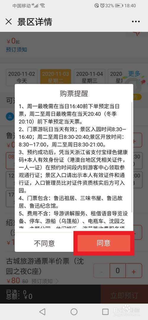 不雅看购票提醒,点击赞成,如图红色文本框: