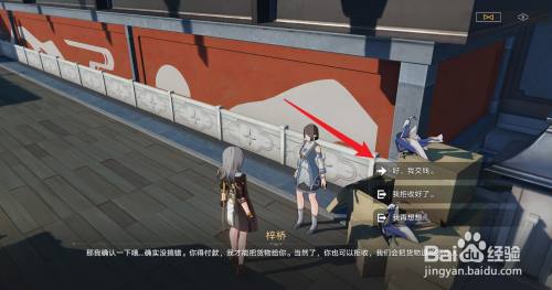 工具/原料外星人条记本 x17R2Windows 11崩坏:星穹铁道 1.0.5方法/步骤1打开游戏舆图,选择星槎海中枢,移动到舆图中所示位置。2找到梓桥,与梓桥举行对话。3点击我要取个货。4选择宝箱的取货码,点击确认。5点击货到付条目。6点击交钱即可。END