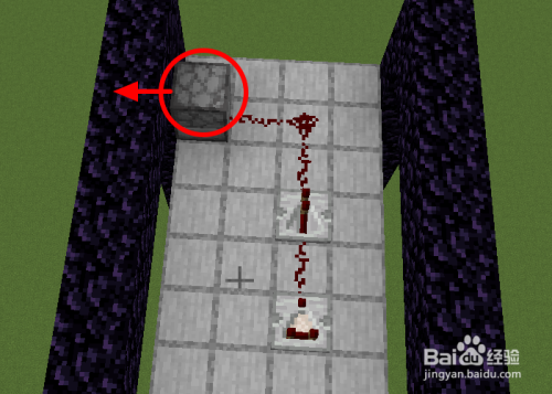 在此中间隔地狱门比来的方块放置一个岌岌可危标的目的地狱门的发射器,发射器后面放置两个红石转弯过来再放一个红石中继器-红石-红石比力器