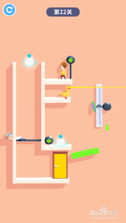 工具/原料一加10 Pro安卓Android 13This Boy's Life2.0.6方法/步骤1这一关有三个拉针,少年站在小黄鸭上侧,环境如图。 2点击打开地雷下侧的拉针,如图。 3点击滑动小黄鸭右侧的反光镜,如图。 4点击打开少年右侧的拉针,如图。 5点击打开少年下侧的拉针,如图。 6少年顺遂出险,弹出通关画面,如图。这样就过关了。END
