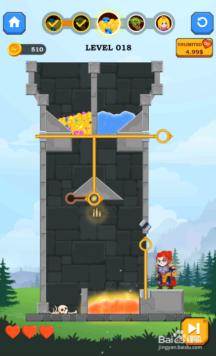 少年景功获得宝藏,得到30金币,如图。这样就过关了。