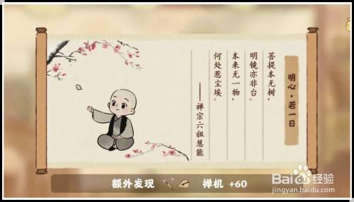 解锁罗山寺落伍入藏经室,逐日整理一次经籍获取禅机增长禅缘,当禅缘到达指定命目即可进级,2级解锁禅一样平常:暮鼓、晨钟。