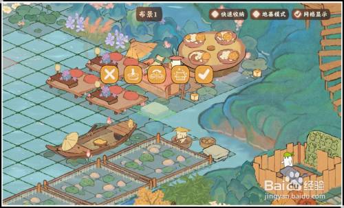 游戏的右下侧位置点“编纂”,将带有水点标识的修建放置在水面上,仙女湖、自建水面都可装饰。