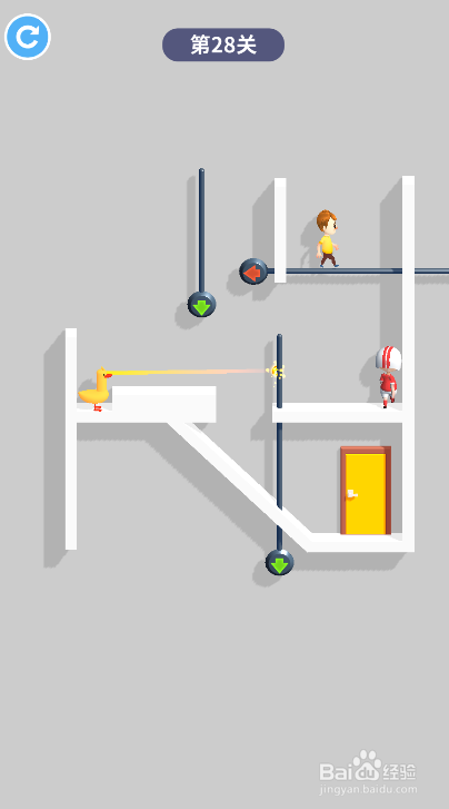 工具/原料一加10 Pro安卓Android 13拉针救援21.1.3方法/步骤1这一关内里有四个拉针,小黄鸭在匪徒左侧,环境如图。2点击打开小黄鸭右侧的拉针,如图。3点击打开匪徒左侧的拉针,如图。4点击插上少年左侧的拉针,如图。5点击打开少年下侧的拉针,如图。6少年景功出险,弹出通关动画,如图。这样就过关了。END