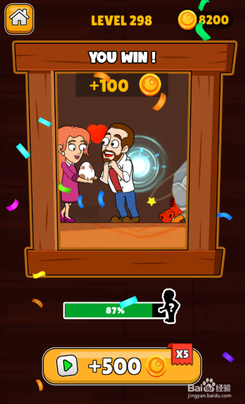 老婆顺遂获救,得到100金币,如图。这样就过关了。
