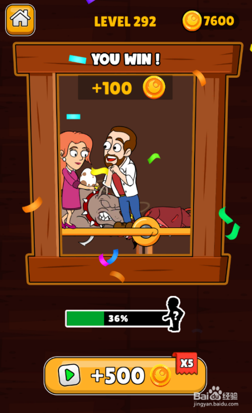 老婆顺遂获救,得到100金币,如图。这样就过关了。