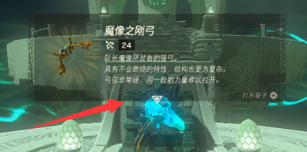7、一直往里走就能看到一个宝箱,打开后就能得到【魔像之刚弓】,并完当作尼恩吉希神庙挑战。