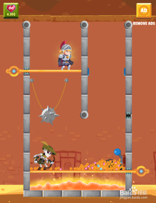 工具/原料一加10 Pro安卓Android 13勇士拉针大冒险1.0.1方法/步骤1这一关的使命是获得宝藏,内里有三个拉针,流星锤吊在少年下侧,毒蜘蛛在宝藏下侧,环境如图。2点击移除毒蜘蛛下侧的拉针,如图。3点击划断流星锤右上粒趴侧的绳子,冷泥争如图。4点击关泰划断流星锤上侧的绳子,如图。5点击移除少年下侧的拉针,如图。6少年景功获得宝藏,得到30金币,如图。这样就过关了。END