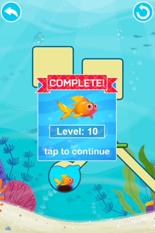 水标的目的下游淌,金鱼获救,弹出COMPLETE画面,如图。这样就过关了。