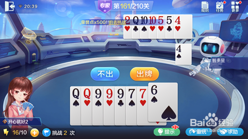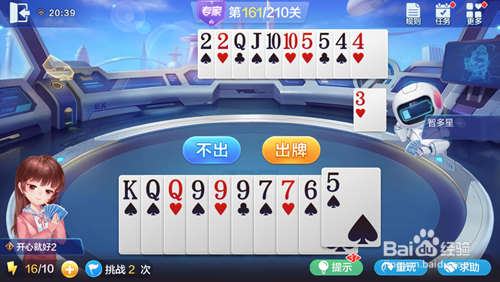 我方出9997,出完了,专家模式第161关卡顺遂过关。