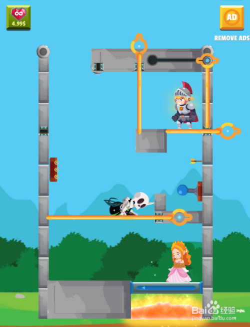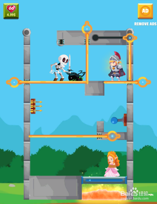 工具/原料一加10 Pro安卓Android 13勇士拉针大冒险1.0.1方法/步骤1这一关内里有六个拉针,使命是营救公本家儿,环境如图。2点击移除毒蜘蛛左侧的拉针,如图。3点击移除骷髅人下侧的拉针,如图。4点击移除少年左侧的拉针,如图。5点击滑动少年右侧的拉针,如图。6点击移除少年下侧的拉针,如图。7公本家儿顺遂获救,得到30金币,如图。这样就过关了。END