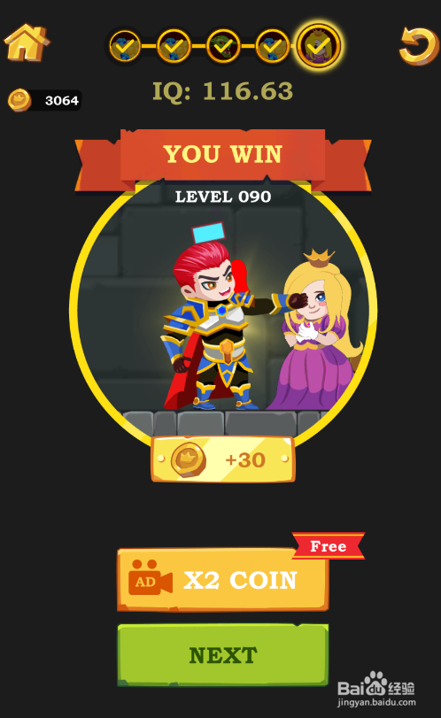 公本家儿顺遂获救,得到30金币,如图。这样就过关了。