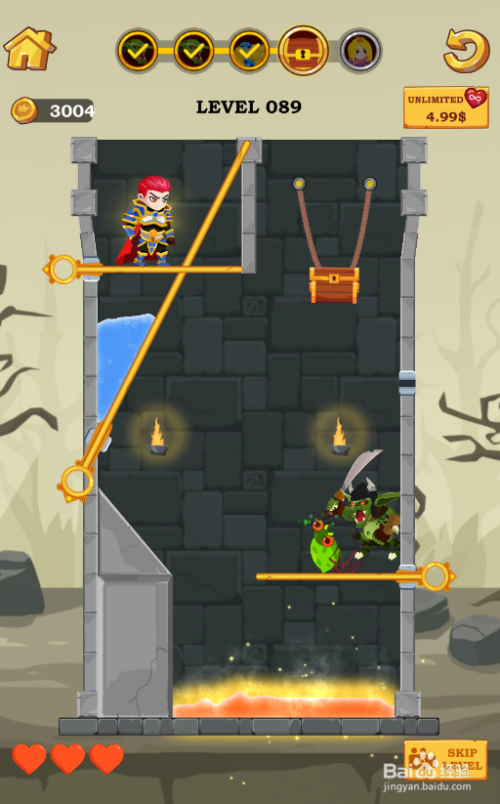 这一关内里有四个拉针,使命是获得宝箱,环境如图。
