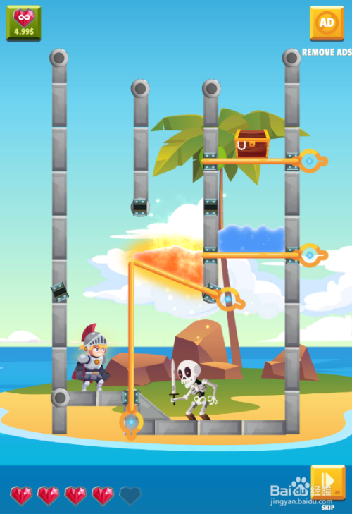点击移除骷髅人上侧的拉针,如图。
