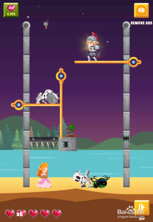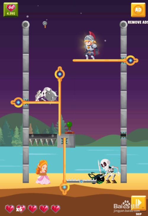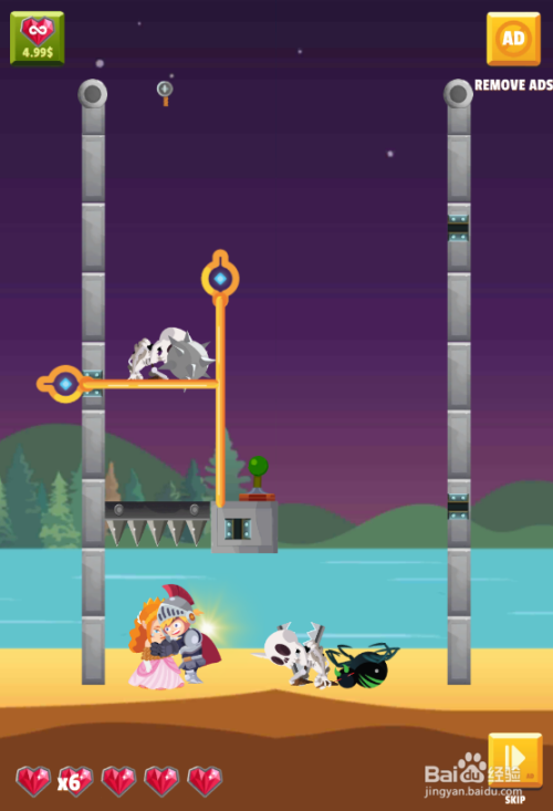 工具/原料一加10 Pro安卓Android 13勇士拉针大冒险1.0.1方法/步骤1这一关的使命是营救公本家儿,内里有五个拉针,环境如图。2点击划断流星锤上侧的绳子,如图。3点击移除毒蜘蛛下侧的拉针,如图。4点击移除公本家儿右侧的拉针,如图。5点击移除少年下侧的拉针,如图。6公本家儿顺遂获救,弹出YOU WIN画面,如图。这样就过关了。END
