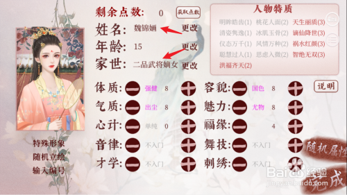 将脚色姓名修改为魏锦婳,门第刷得越高越好。