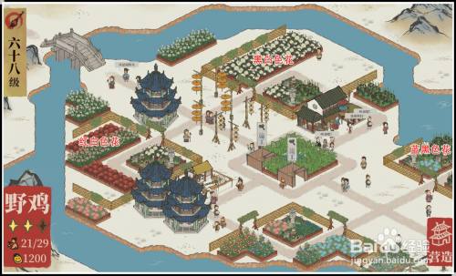 在学堂内建书桌并查看星图,学堂外空隙制作2座七佛石塔,围绕石塔建24座人工湖(如图放置);建8座蓝色修建:望火楼、琴楼、戏台、澡堂等都可。
