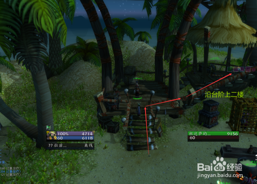 在岛上坐标(15,15)处会看到一个二层木制巨魔修建,沿着左手边去往该修建上层。