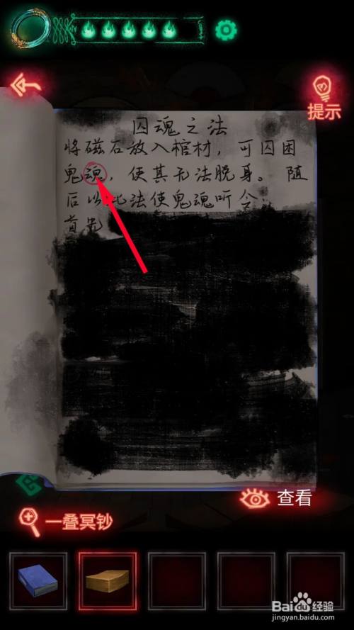 点击后书上大多都被盖住了,可是照旧有一些线索的,被红圈圈中的三个字就是我们要找的线索。