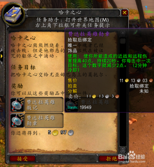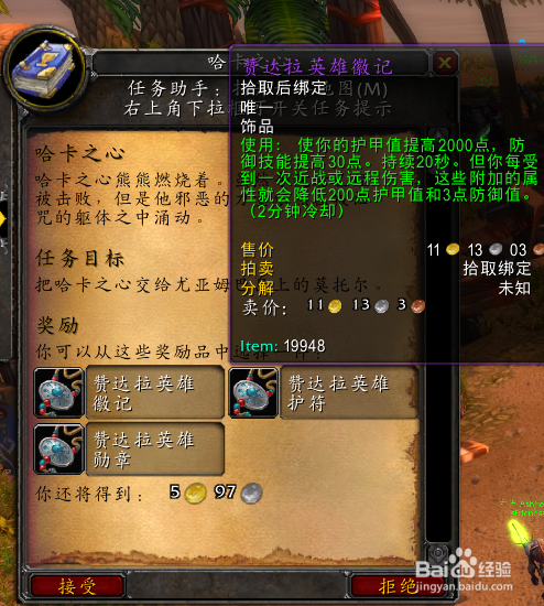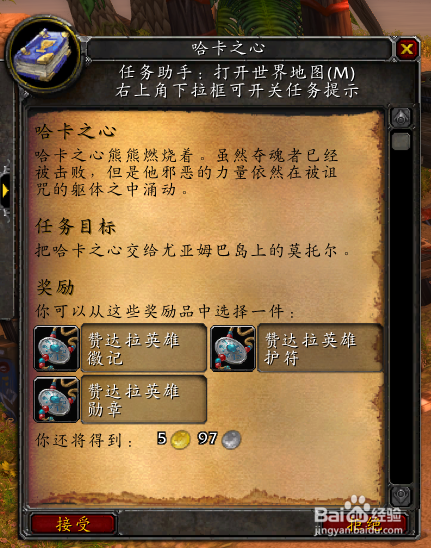 右键利用[哈卡之心]后取得使命[哈卡之心],该使命会奖励奖励3种饰品,三选一。