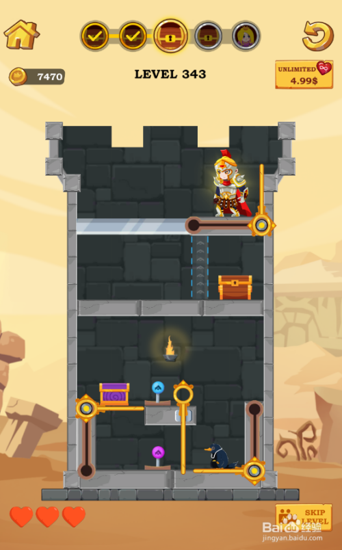 工具/原料一加10 Pro安卓Android 13英雄营救1.1.26方法/步骤1这个关卡的英雄站在宝箱上侧,环境如图。 2点击滑动紫色箱子下面的横标的目的推拉杆,如图。 3点击滑动鸭嘴兽下侧的横标的目的推拉杆,如图。 4点击拔失粉色开关右侧的竖标的目的拉针,如图。 5点击滑动英雄右侧的竖标的目的推拉杆,如图。 6英雄乐成获得宝箱,弹出通关动画,如图。这样就过关了。 END