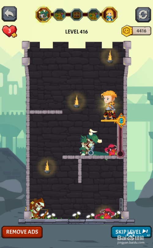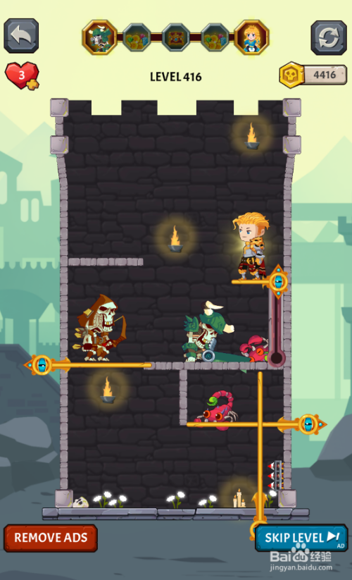 这个关卡的英雄站在捕兽夹右侧,使命是覆灭毒蝎和骷髅兵,环境如图。