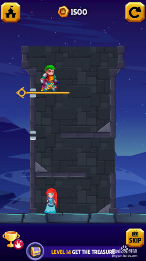 这个关卡的英雄站在滚石左侧,使命是营救底部的公本家儿,环境如图。