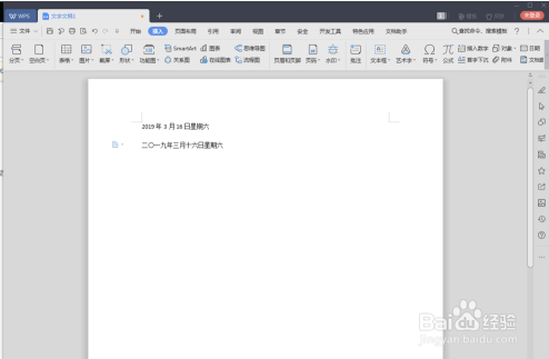 在新建的文字文稿中,我们手动输入一个日期,这行家动输入日期的目的只是为了做一个对比。