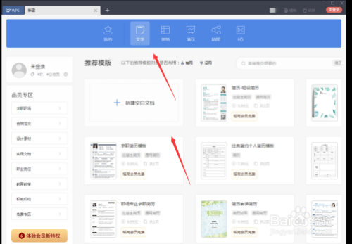 接下来在弹出的新建标签页中,选择蓝色配景条上的文字功效,然后选择新建空缺文档。