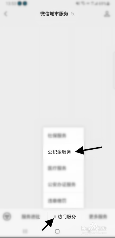 进入微信都会办事选择热点办事,点击公积金办事选项。
